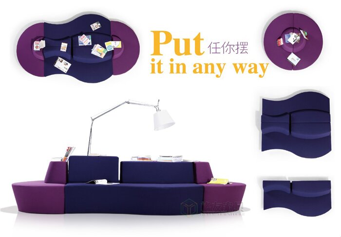 特點:線條簡明、透明,色彩跳躍簡潔、大氣、時尚,給人們帶來無限舒適、時尚的享受,坐在沙發(fā)上,放飛思緒。